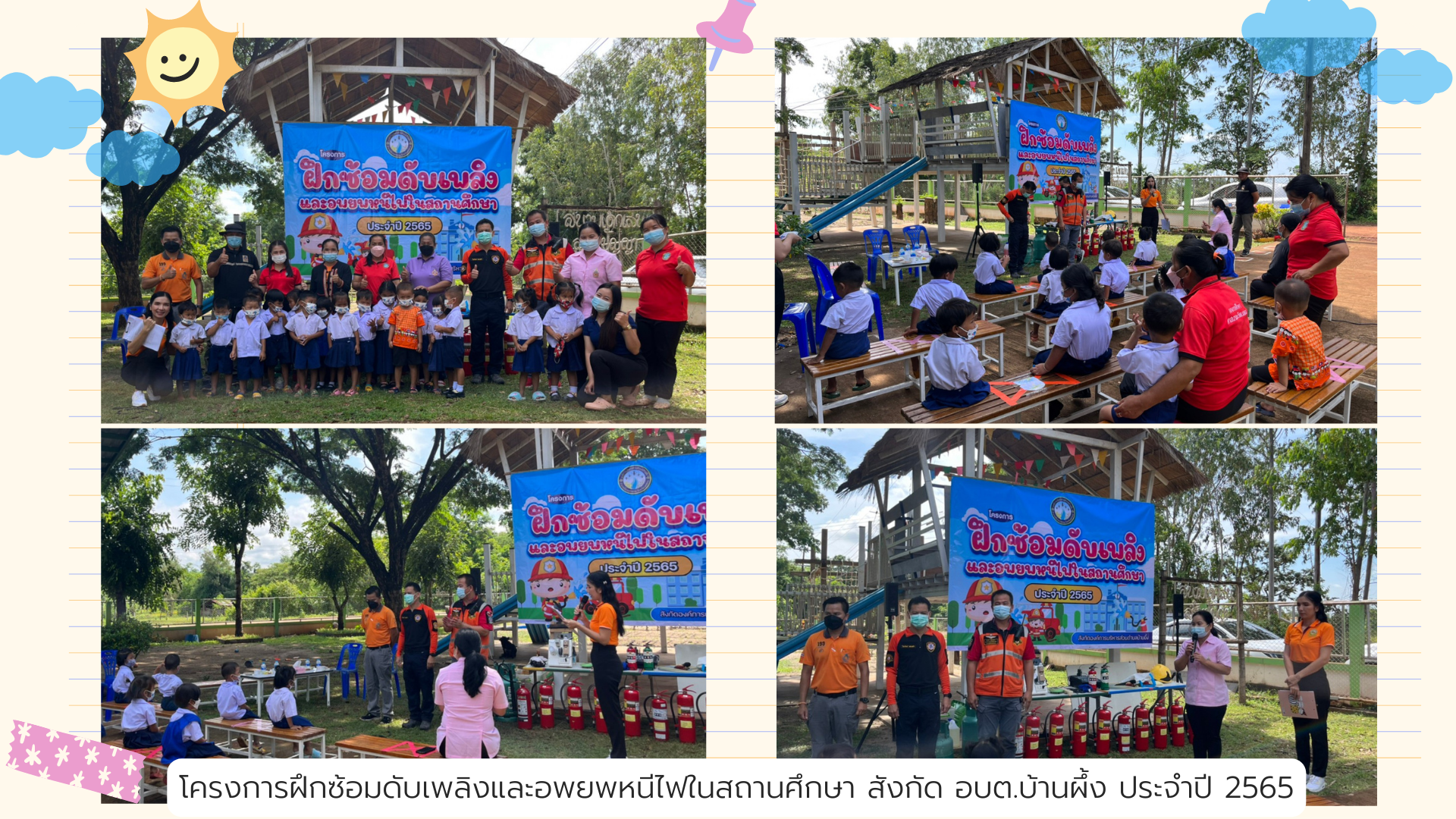 โครงการฝึกซ้อมดับเพลิงและอพยพหนีไฟ ในสถานศึกษา สังกัด อบต.บ้านผึ้ง