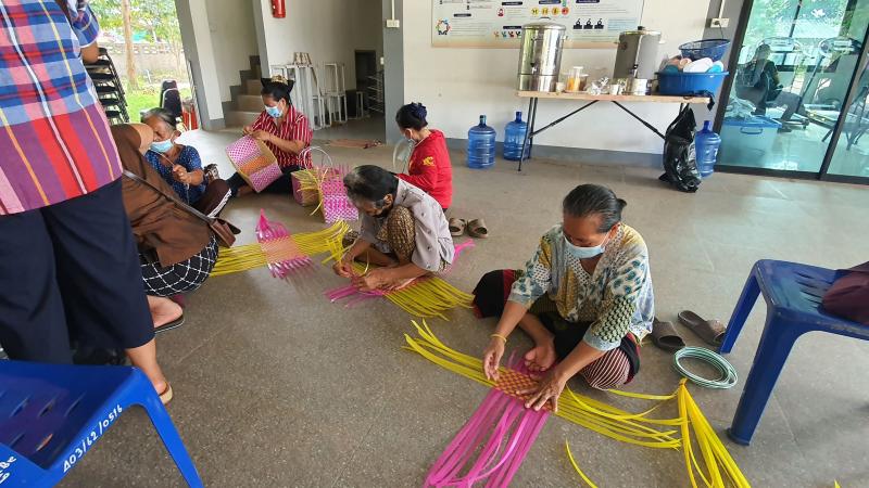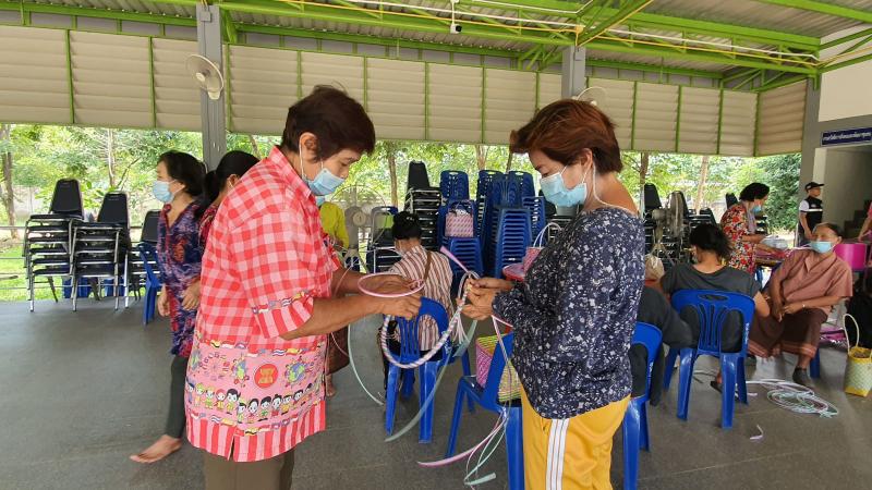 รายละเอียด : วันที่ 21 - 23 มิ.ย.64 ดาบตำรวจพิทักษ์ ต่อยอด นายกอบต.บ้านผึ้ง มอบหมายให้งานสวัสดิการสังคมฯ ร่วมกับสำนักงานพัฒนาสังคมและความมั่นคงของมนุษย์จังหวัดนครพนม ร่วมดำเนินงาน โครงการเสริมสร้างพลังผู้สูงอายุเพื่อการพัฒนาที่ยั่งยืน ในกิจกรรมส่งเสริมอาชีพให้กับผู้สูงอายุในจังหวัดนครพนม "การสานตะกร้าจากเส้นพลาสติก" เพื่อเยียวยาผลกระทบจากการแพร่ระบาดของโรคติดเชื้อไวรัสโคโรนา 2019 ณ อาคารศูนย์พัฒนาคุณภาพชีวิตผู้สูงอายุตำบลบ้านผึ้ง