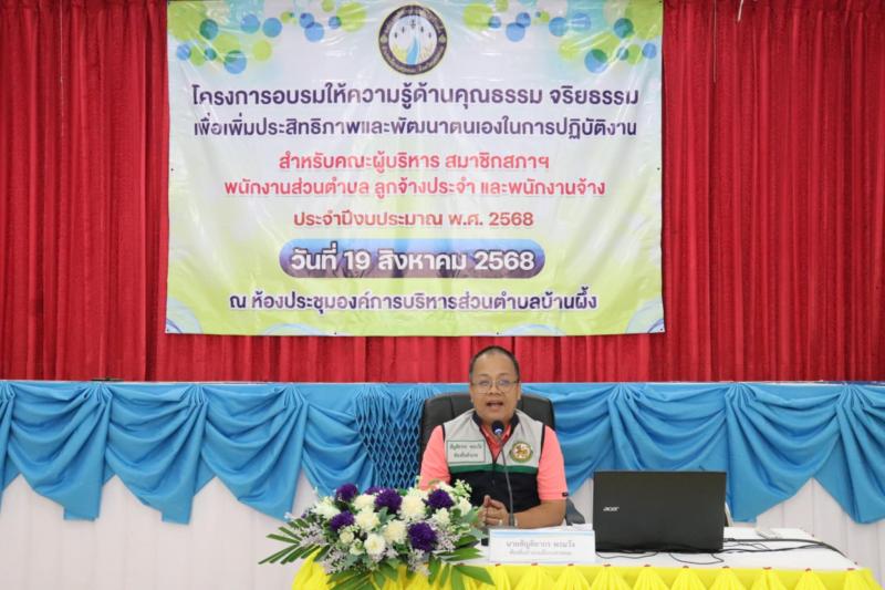 โครงการอบรมให้ความรู้ด้านคุณธรรม จริยธรรม เพื่อเพิ่มประสิทธิภาพและพัฒนาตนเองในการปฏิบัติงานสำหรับคณะผู้บริหาร สมาชิกสภาฯ พนักงานส่วนตำบล ลูกจ้างประจำและพนักงานจ้าง ประจำปีงบประมาณ พ.ศ.2568
