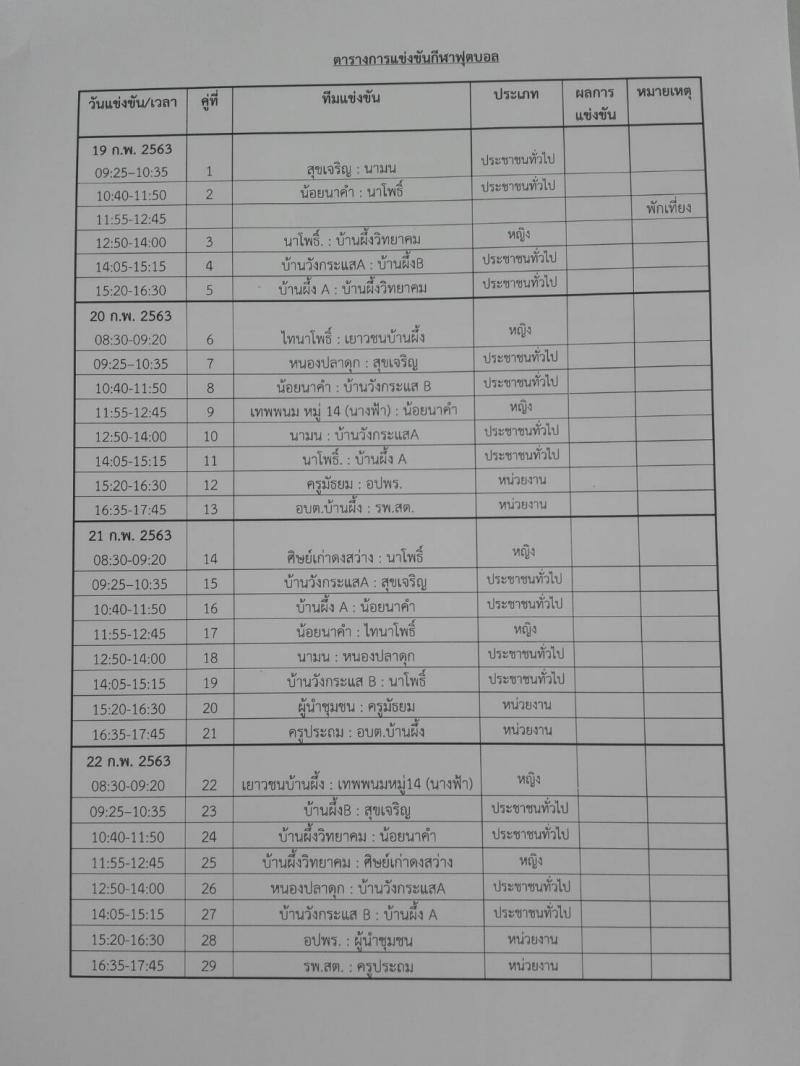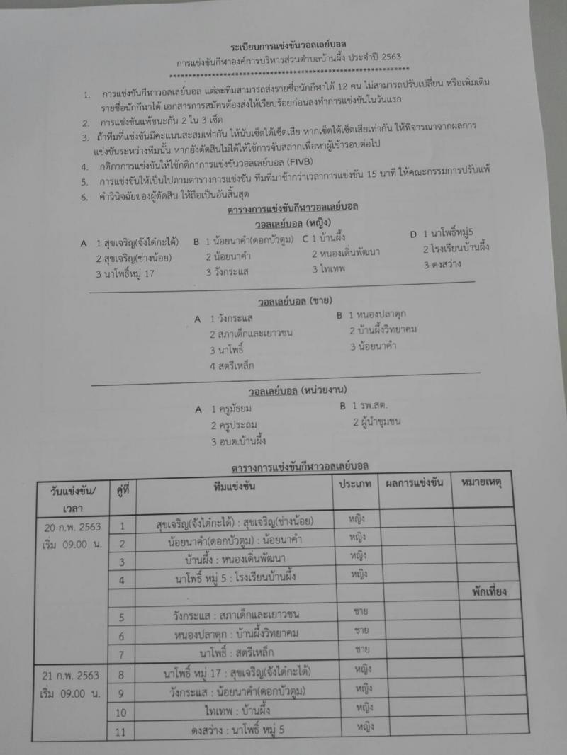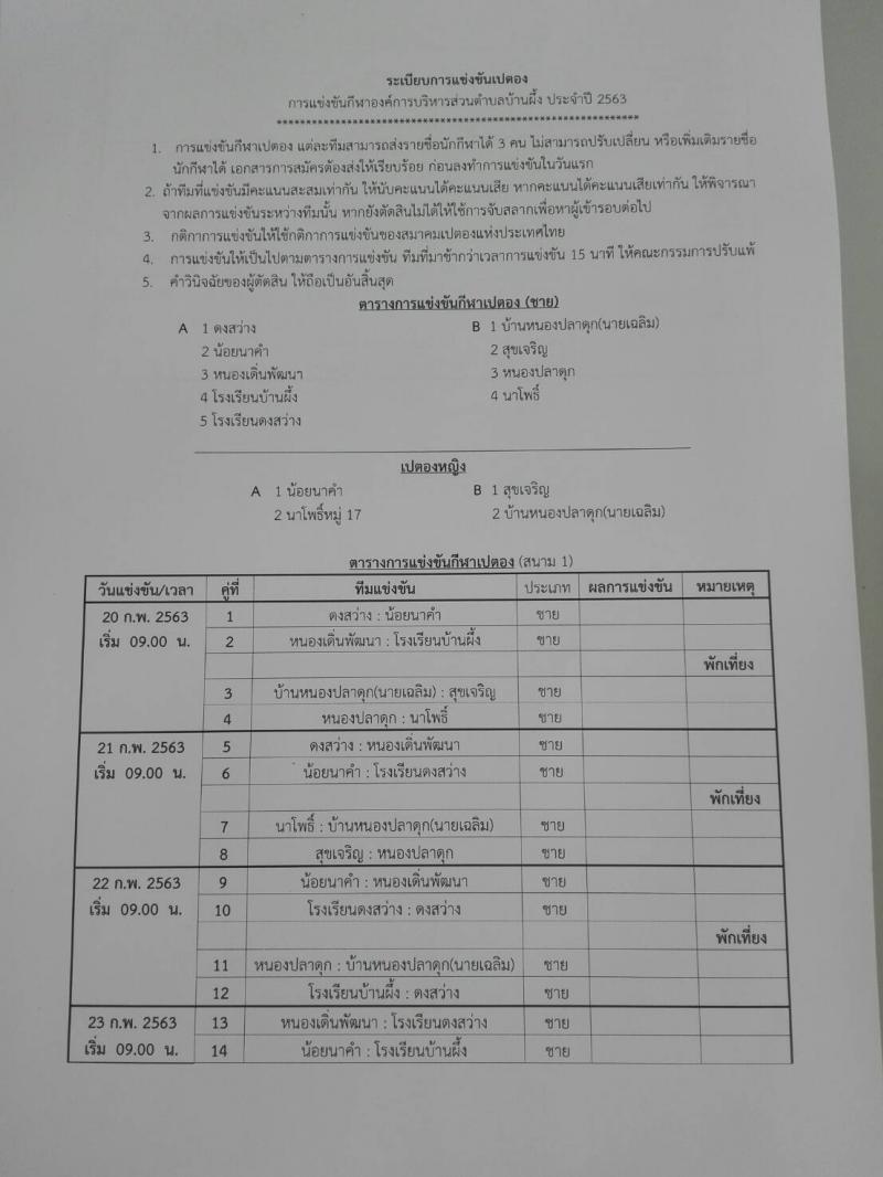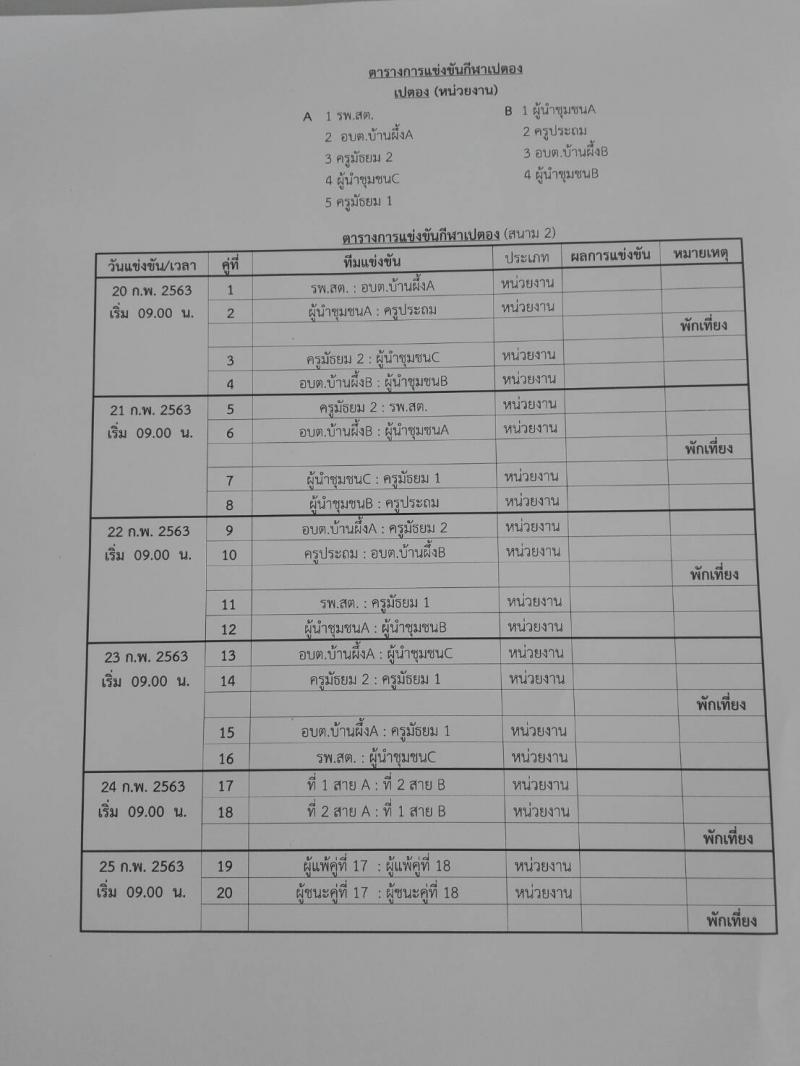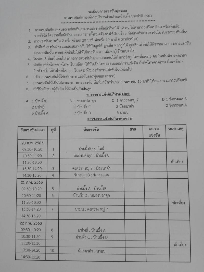 ประชาสัมพันธ์ตารางการแข่งขันกีฬา อบต.บ้านผึ้ง ประจำปี พ.ศ.2563
