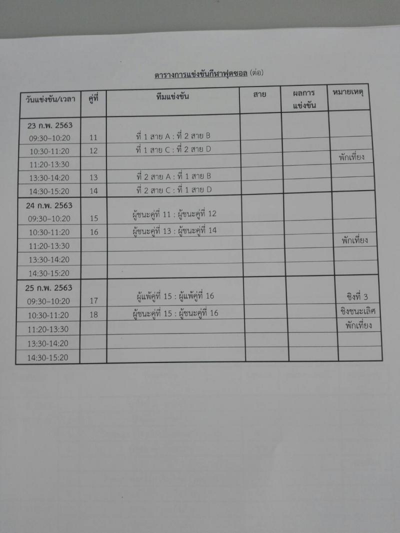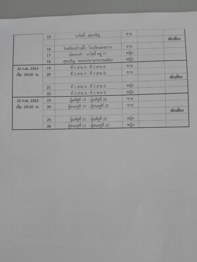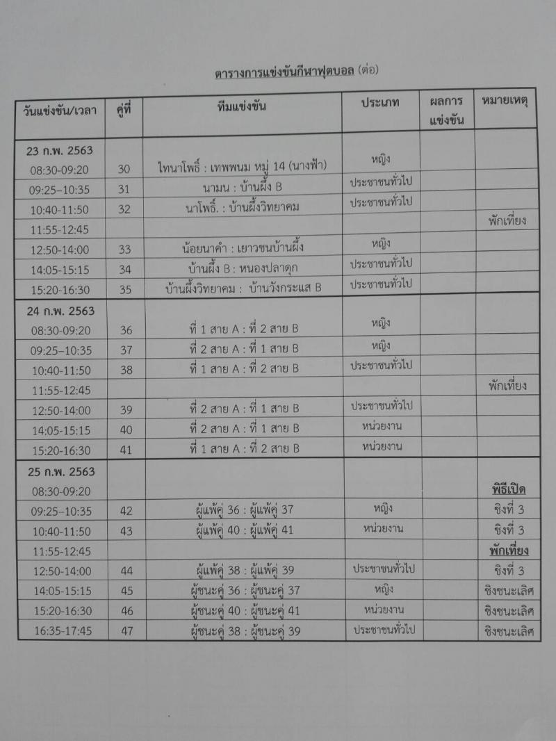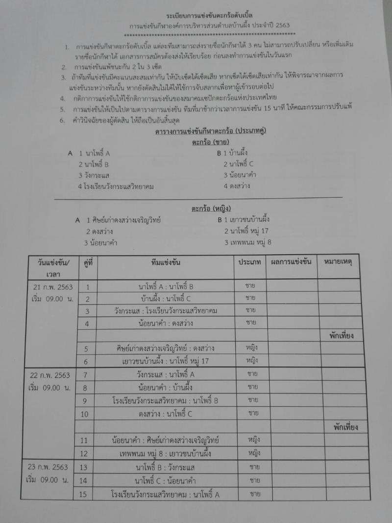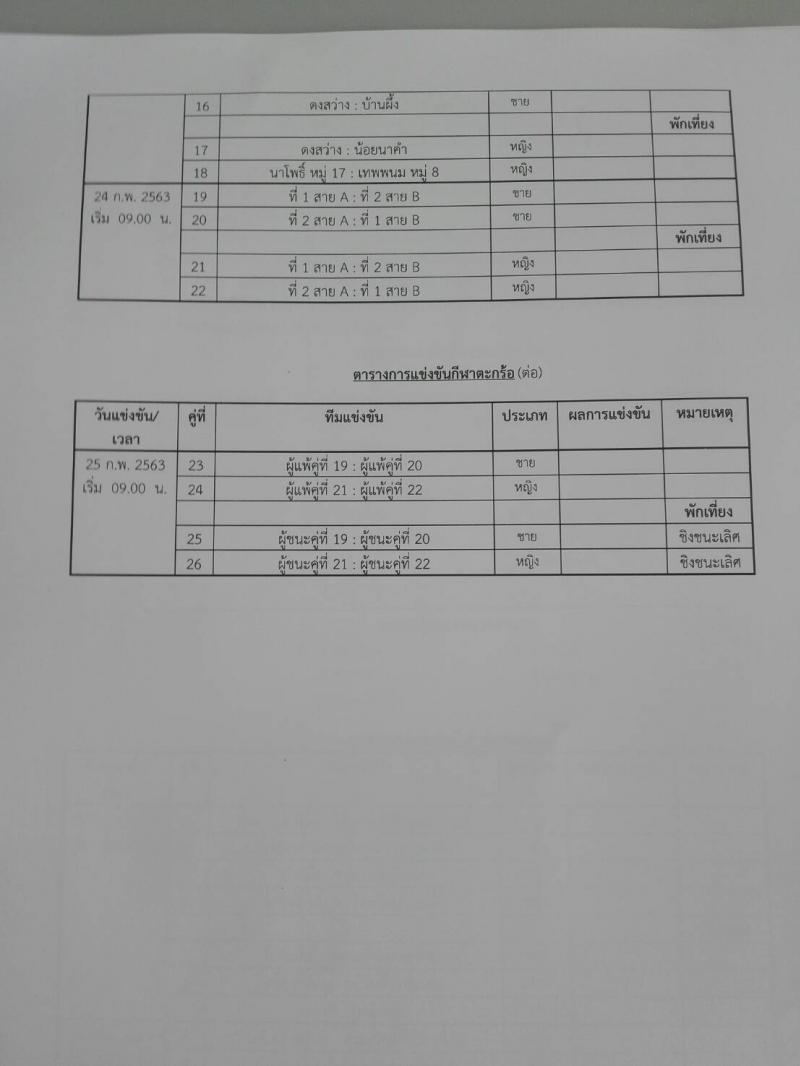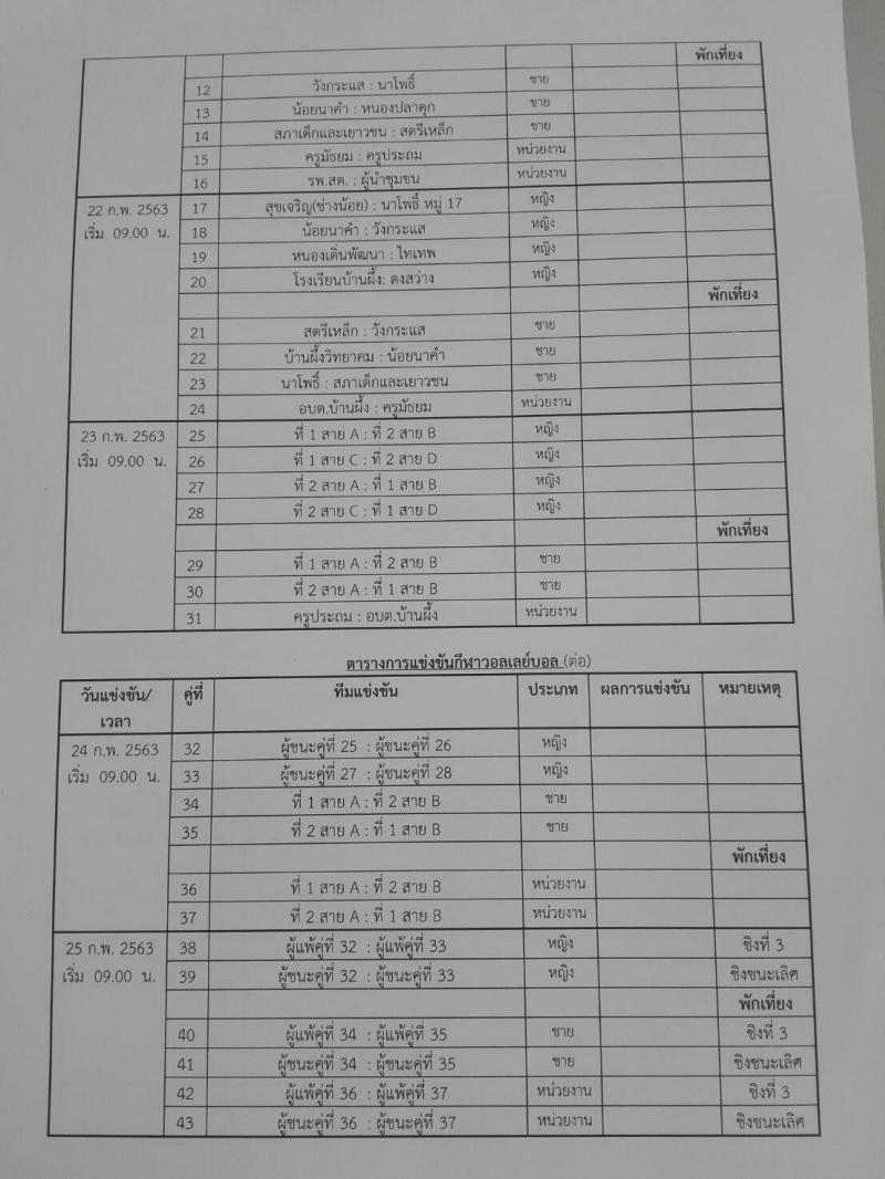 ประชาสัมพันธ์ตารางการแข่งขันกีฬา อบต.บ้านผึ้ง ประจำปี พ.ศ.2563