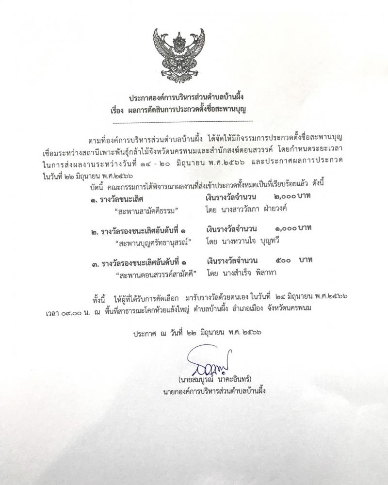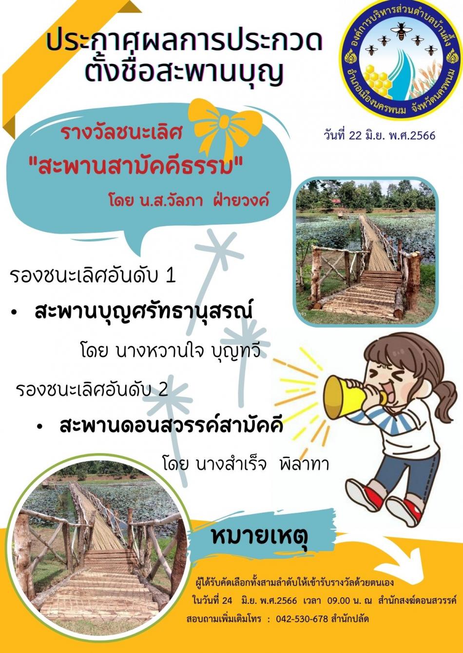 ประกาศผลการตัดสินการประกวดชื่อสะพานบุญ